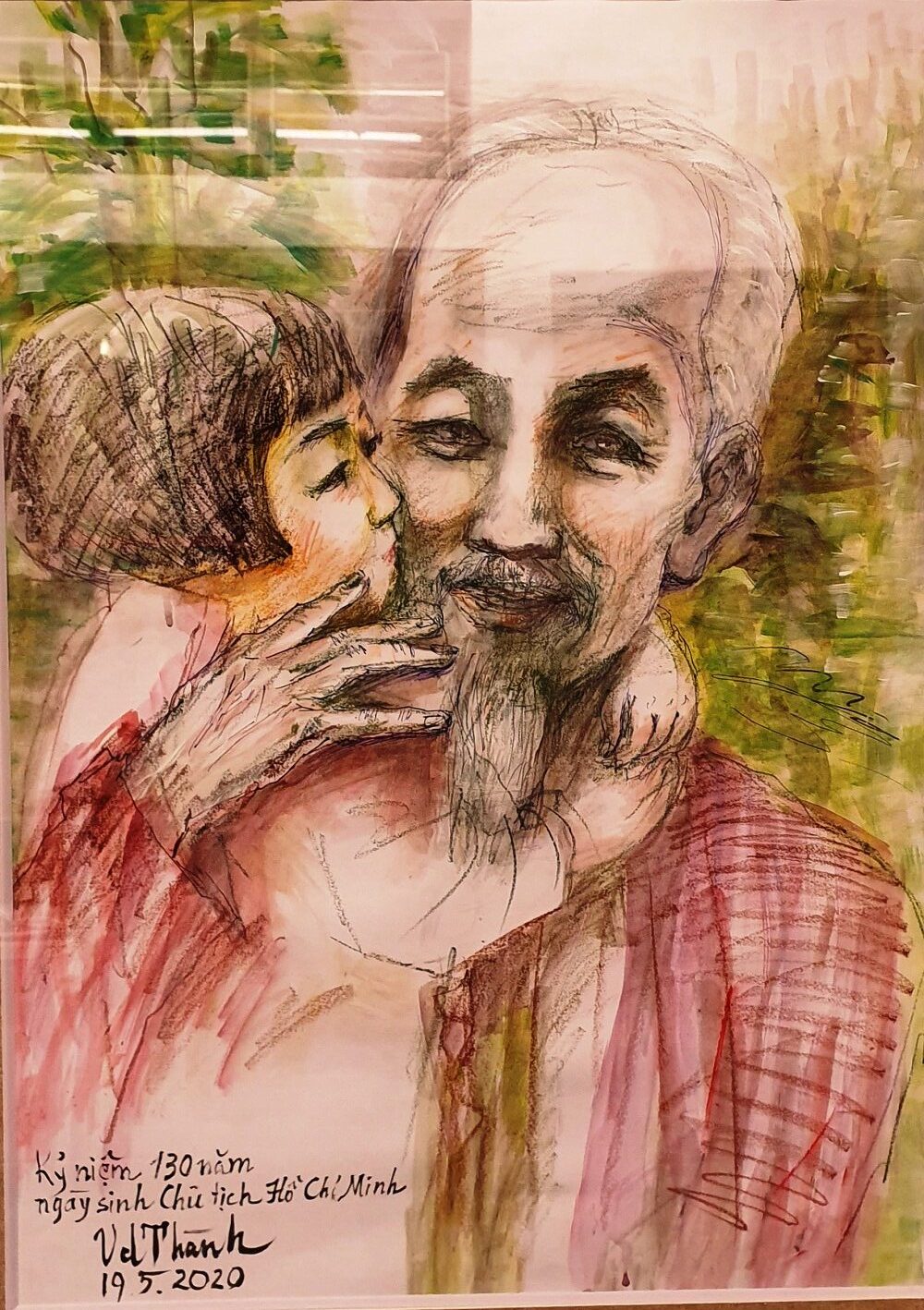 Để mừng sinh nhật 130 năm của Chủ Tịch Hồ Chí Minh, Văn Dương Thành đã sáng tác bức tranh kỷ niệm tình yêu thương của Bác dàn cho các em nhi đồng